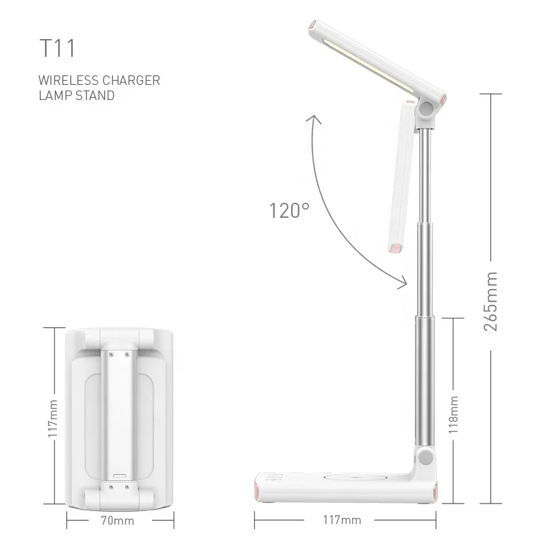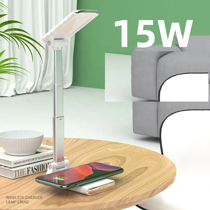 2 In 1 15W Adjustment Home Lamp Lighting Multifunction LED Desk Table Lamp Fast Charging Wireless Charger With Folding Light